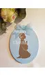 ce médaillon de petite garçon en prière peut être personnalisable. L'accrochage se fait par le ruban au dos.